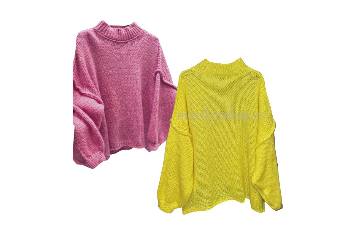 Su detalle más especial son los remates vistos, un acabado diferente que aporta personalidad y un aire moderno al jersey, convirtiéndolo en una prenda distintiva dentro de cualquier armario. Disponible en dos colores vibrantes, es perfecto para dar un toque de color a tus outfits de temporada. Combina fácilmente con vaqueros, pantalones rectos o faldas, adaptándose tanto a looks casuales como urbanos.